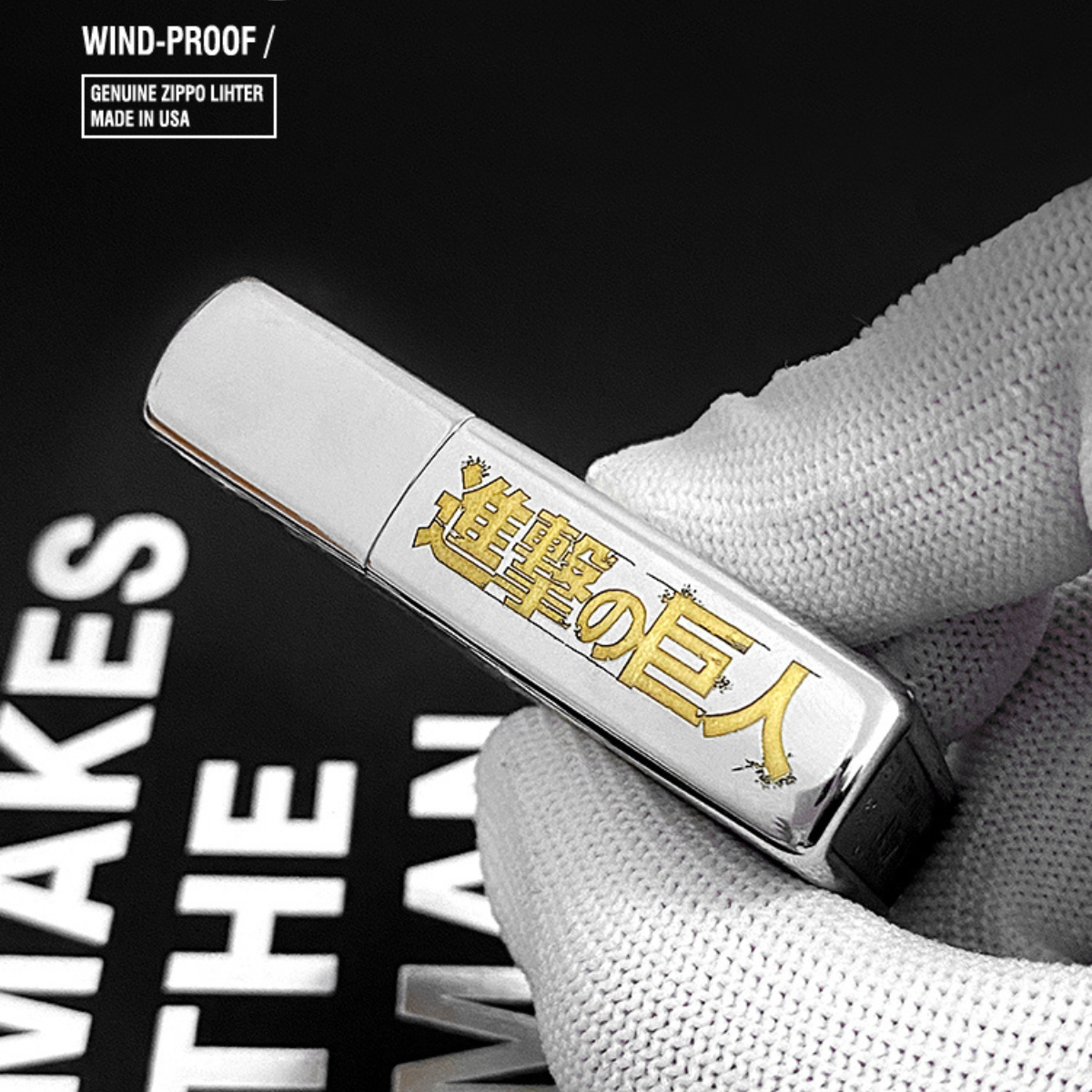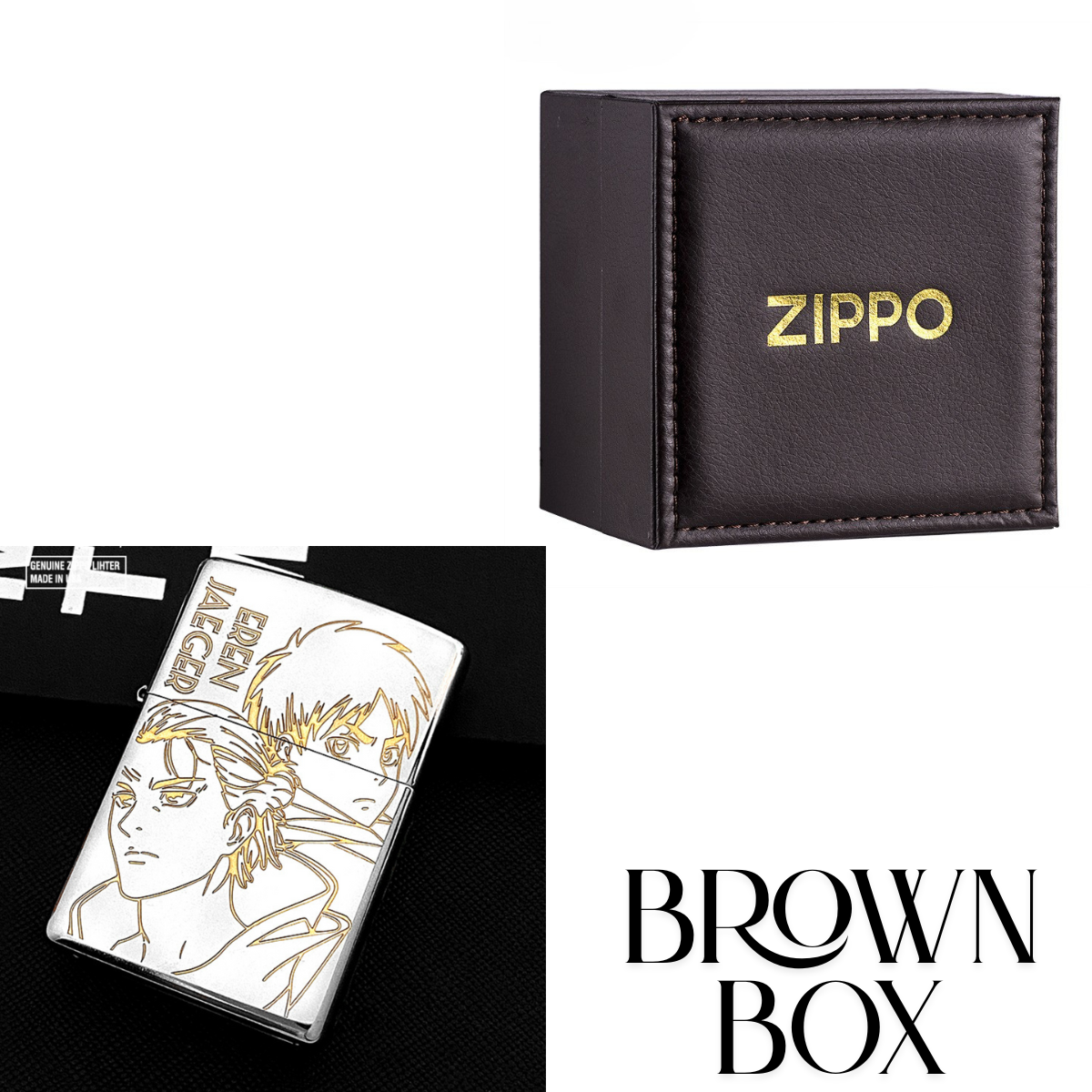 Honor the Attack on Titan legacy with this genuine Zippo windproof lighter, featuring Eren Yeager and the Wings of Freedom emblem. The front is intricately engraved with Eren’s dual portrait, while the back proudly displays the Scouting Legion insignia and the iconic quote: “For the Glory of Humanity”. Made with chrome-plated craftsmanship and Zippo’s signature windproof design, this lighter is perfect for anime collectors and fans of the epic saga.
