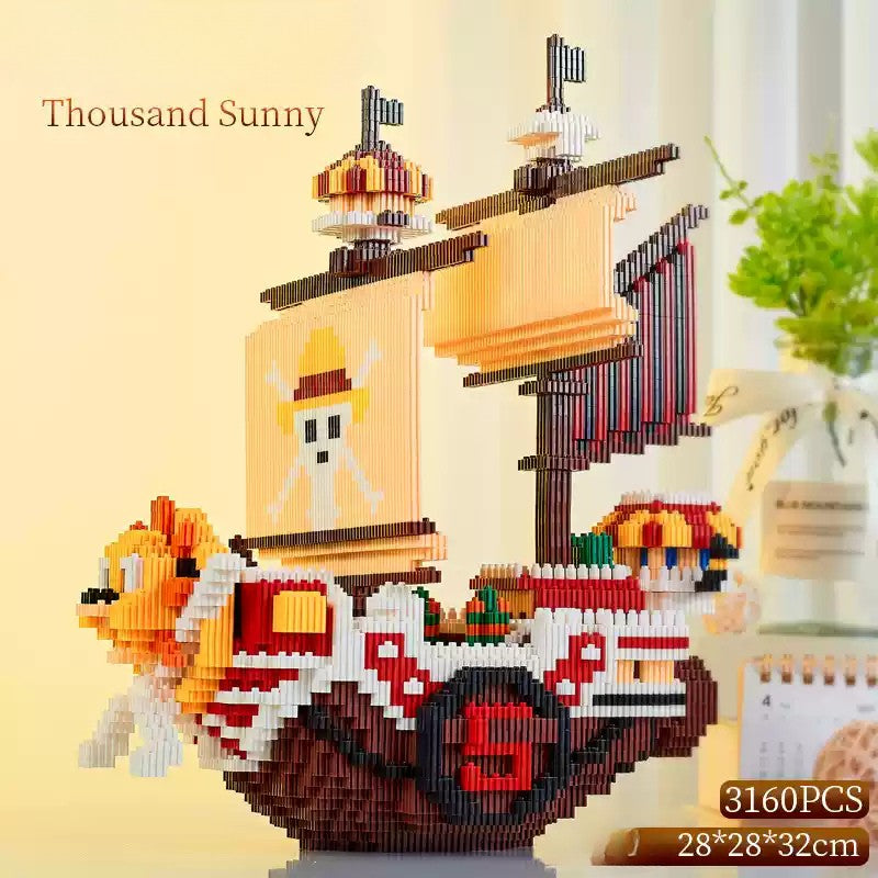 • Thousand Sunny Ship Model: Recreate the legendary ship of the Str.aw H.at Pir.ates in stunning detail, with a fully customizable design that captures the spirit of adventure.