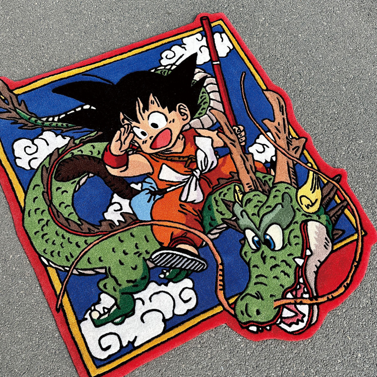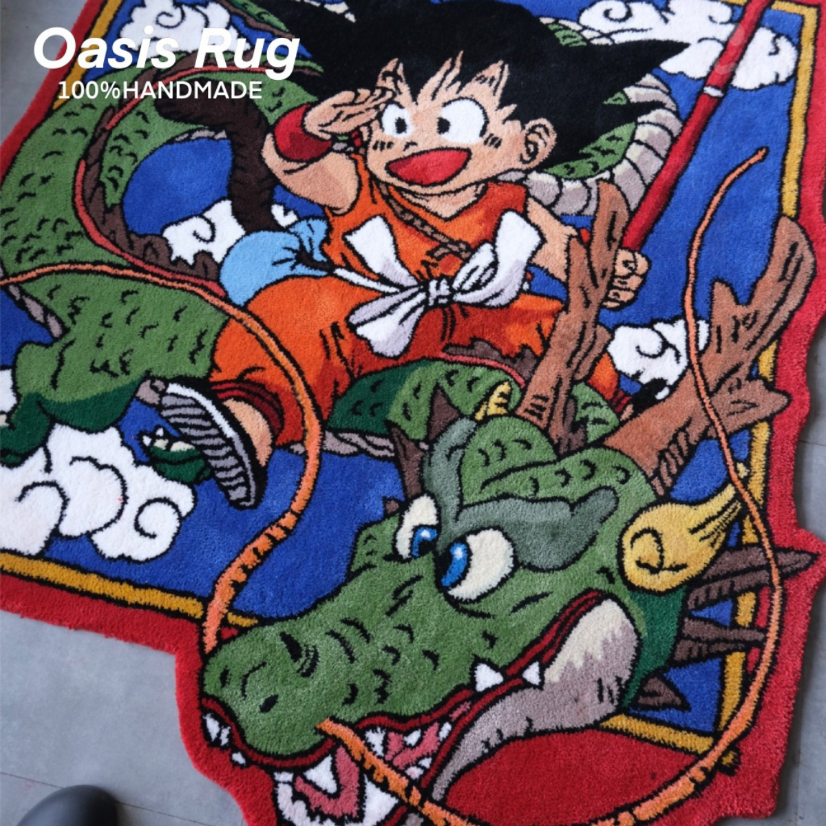 Step into the world of Dragon Ball with this stunning handmade rug featuring young Goku riding the mighty Shenron. Designed by OASISRUG, this carpet is a true collector’s item for anime lovers and nostalgic fans alike. The bold colors, high-definition tufting, and playful energy bring any room to life.