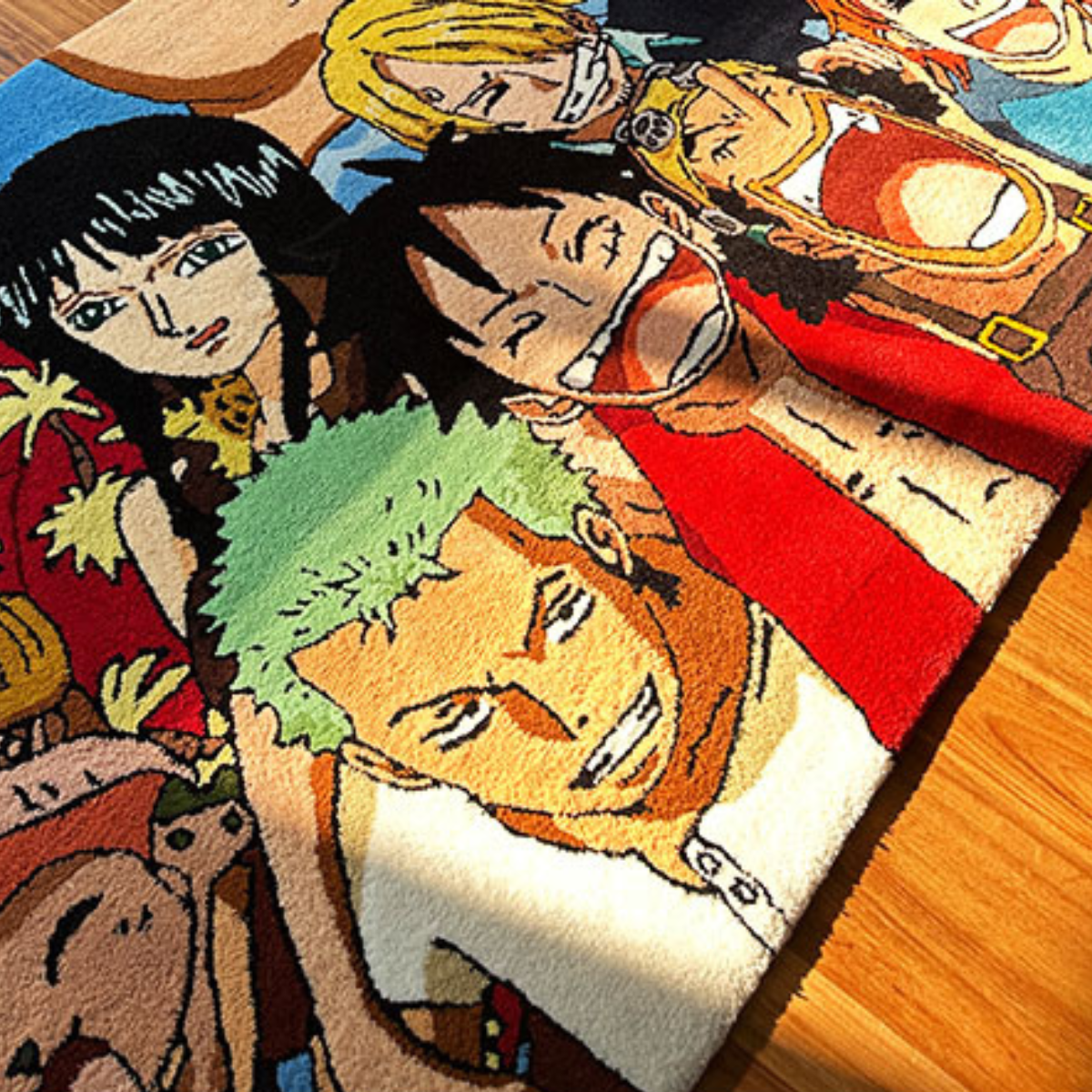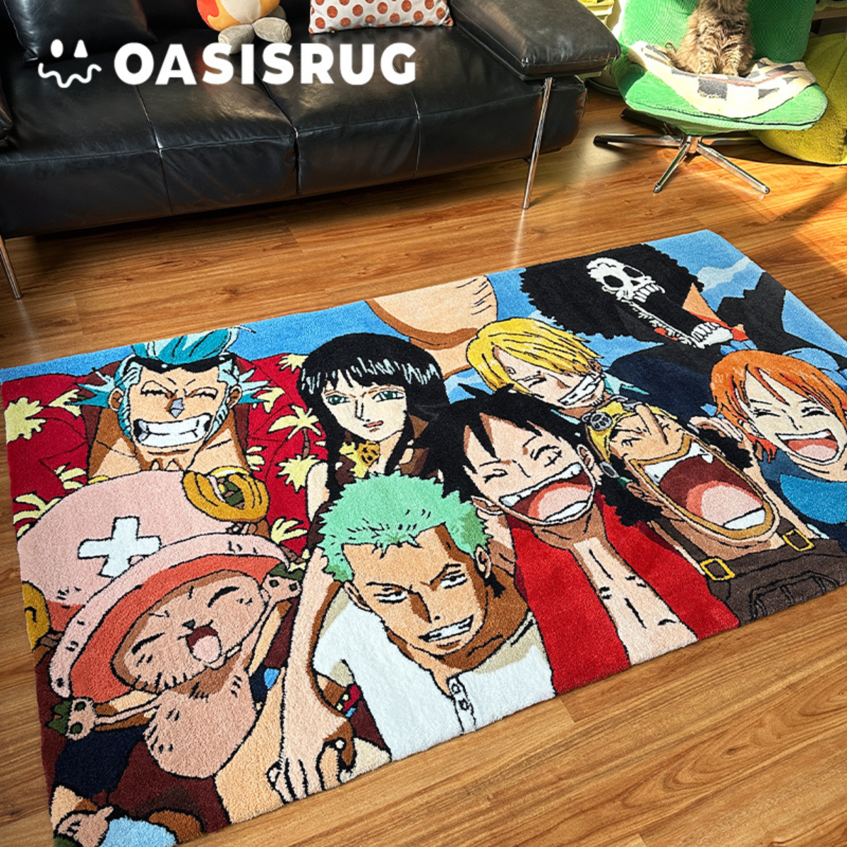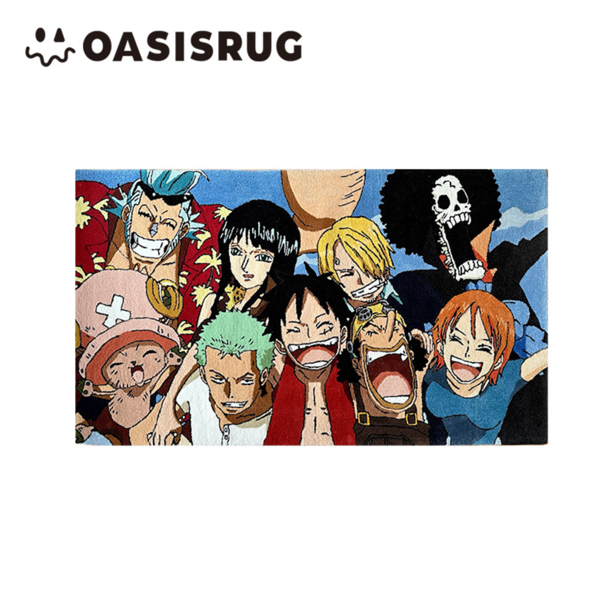 Bring the full St.raw H.at Cr.ew into your home with this vibrant and detailed handmade rug by OASISRUG. Featuring L.uffy, Zo.ro, Sa.nji, Na.mi, Rob.in, Chop.per, Fran.ky, Us.opp & Brook in a joyful group shot, this rug is a must-have for any true O.ne Pi.ece fan.