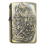 Discover the R.or.ono.a Zo.ro Zippo lighter with 3D relief engraving, a premium design for One Piece fans. Made from antique brass, this original Zippo features intricate dual-sided artwork, depicting the legendary swordsman with flame and sword effects. The classic Zippo system ensures quick ignition and wind resistance, making it perfect for collectors or everyday use.