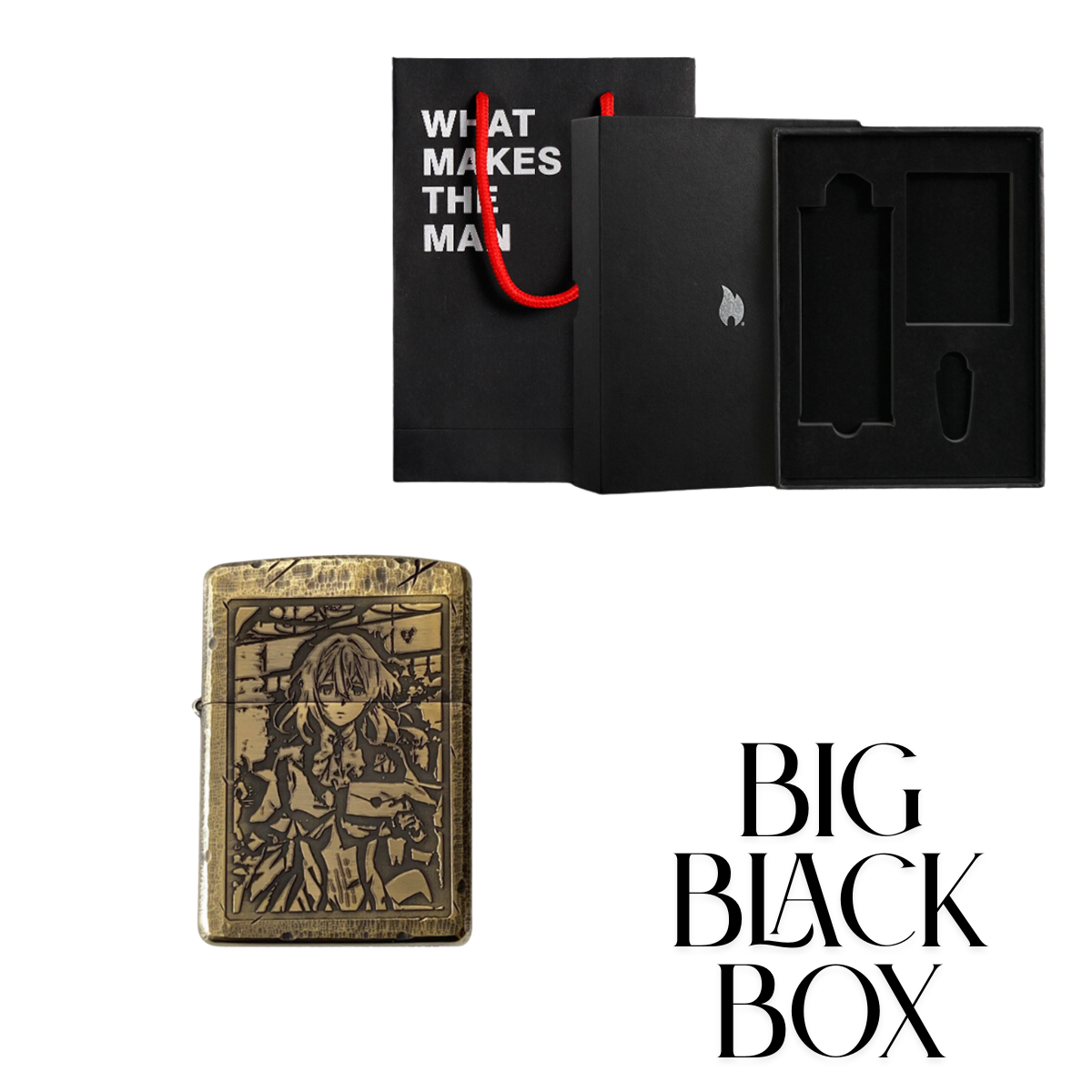 Celebrate the beauty of Violet Evergarden with this exquisite Zippo lighter crafted from pure copper and designed with antique laser engraving technology. The front and back showcase intricate scenes of Violet, capturing the emotional essence of the anime. With Zippo’s windproof technology and durable craftsmanship, this collectible is perfect for anime lovers and collectors alike.